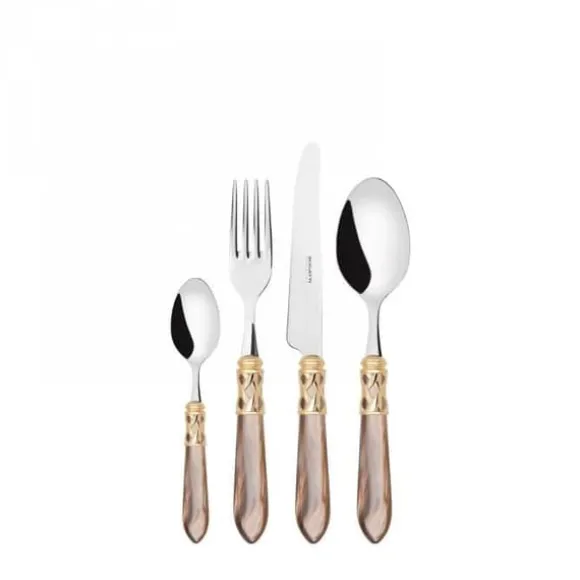 Middagen Aladdin Couronne d’Or innehåller 24 delar i rostfritt stål 18/10 med akrylherrar och en gyllene finish. Elegant och praktisk, den är idealisk för att förhöja ditt bord. Diskmaskinskompatibel upp till 55°C, den förenar magi och prestanda.