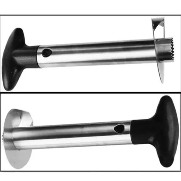 Ananas skärare, 100% ny och av kvalitet. Material: Plast + metall Mått: Bredd 10,5 cm höjd cirka 24 cm diameter cirka 8,5 cm Egenskaper: Du kan skära ananasen i olika storlekar.