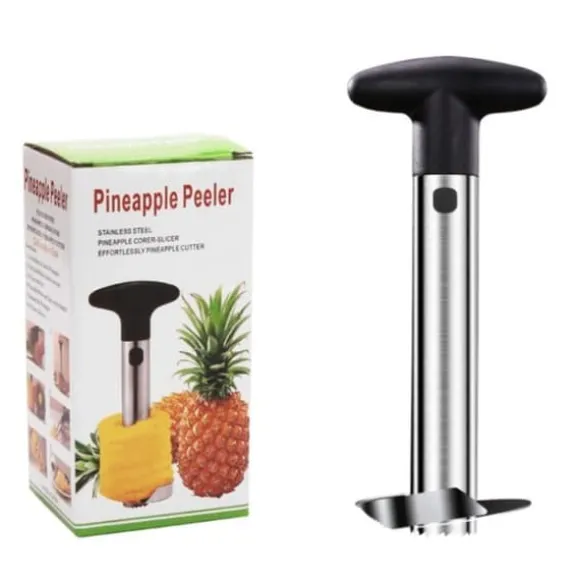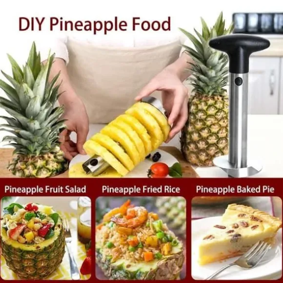 Mått: 24×8,5cm. Med vår ananasskärare i köket, skala, kärna ur, skiva och skär ananas från dess hårda, taggiga yttre kärna utan ansträngning. Lämplig för matlagning, ananas frukt, fruktskivor, hålla ana fräsch