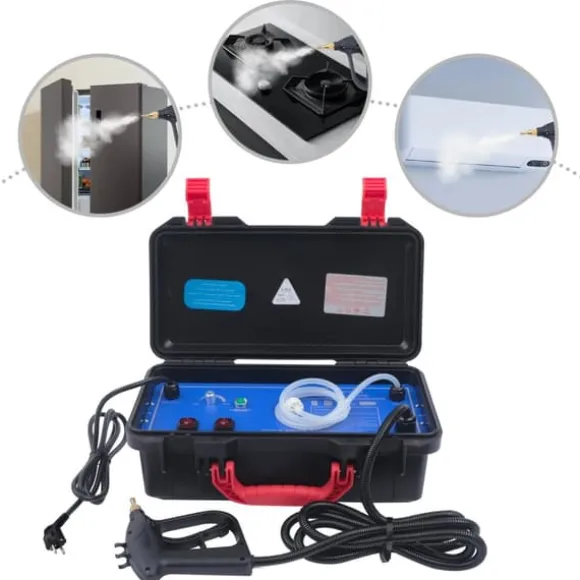 Kraftfull handhållen ångrengörare i svartDenna moderna handenhet på 3000 W och 220 V levererar våt- och torrånga för djup rengöring på många ytor. Robust konstruktion i ABS och rostfritt stål, EU-kontakt och smarta munstycken gör kök, badrum, bil och trånga utrymmen enklare att rengöra.