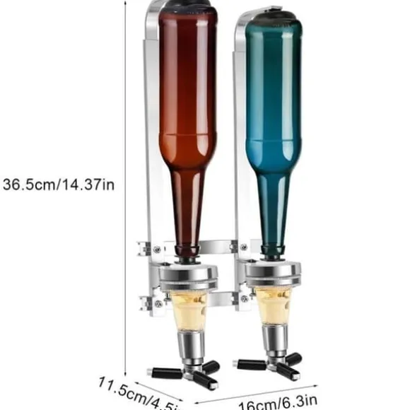 Stöd för vinflaskor i aluminiumlegering och ABS. Mått: 16 x 11,5 x 36,5 cm. Färg: silver. Antal: 1. Idealiskt för barer och sammankomster, denna vindispenser rymmer 2 flaskor. Fjäderdesign som anpassar sig till standardflaskor, lätt att installera och använda. Förbered dina favoritdrycker som ett proffs. Utrymmesbesparing på din bänkskiva tack vare väggmonteringen. Hållbart och säkert material, luktfritt. Setet levereras med 2 skruvar. Märke Bhina, modern stil. Produktmått: 36,5L x 11,5l x 36,5H cm, vikt: 420g. Modell A-1. Tillverkning Yaelly. För vinälskare och trevliga tillställningar.