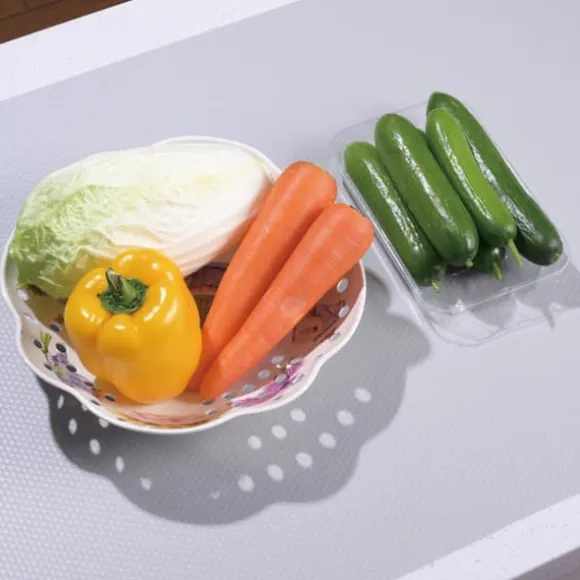 Den halkfria lådmattan förhindrar att innehållet i lådorna rör sig och från att repa och skada materialet som de är gjorda av. Den kan även användas som bord eller skrivbordsunderlägg. Perfekt för att fodra hyllor med krukblommor. Kommer att skydda möblerna mot fukt. PET-material som är resistent mot fukt, smuts och fett. Luktfri, halkfri botten, Delikat struktur på den korrugerade ytan. Rengöring: Torka försiktigt av med en trasa eller skölj under ljummet vatten. Kan trimmas till valfri storlek efter behov. Färg: grå Mått: 50 x 300cm
