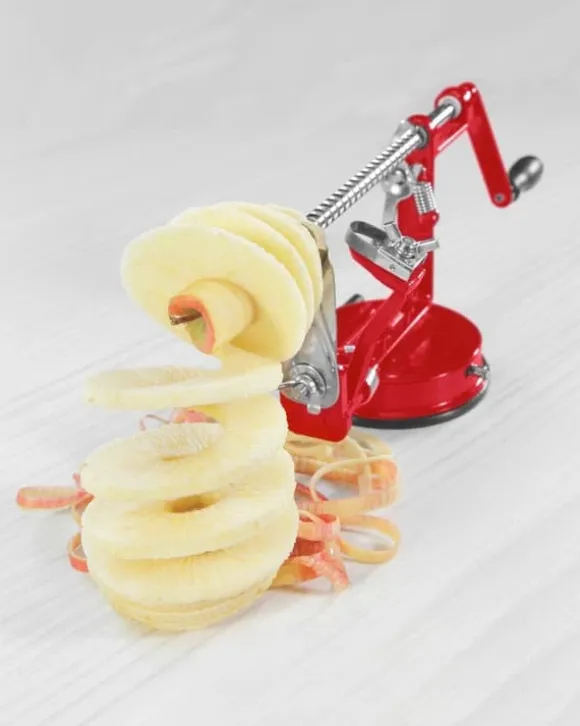 Med Marjukka äppelsvarv blir det enkelt att förbereda äpplen för paj, mos eller torkning. Den smarta konstruktionen skalar, skivar och kärnar ur äpplet med en enda rörelse – snabbt, effektivt och med jämnt resultat varje gång.
