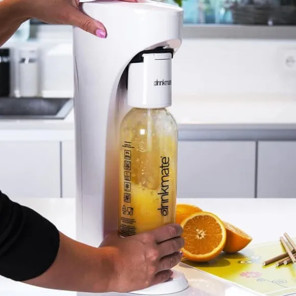 ✅ ANVÄNDBAR – Detta praktiska kolsyraset består av DRINKMATE AquaDream Carbonator och en utbytbar CO2-patron för att producera kolsyrat vatten och andra kolsyrade drycker. Setet innehåller också en 1,1 liters flaska. Kolsyrarens mått: 20 x 13 x 41 cm. Kolsyraren är vit.