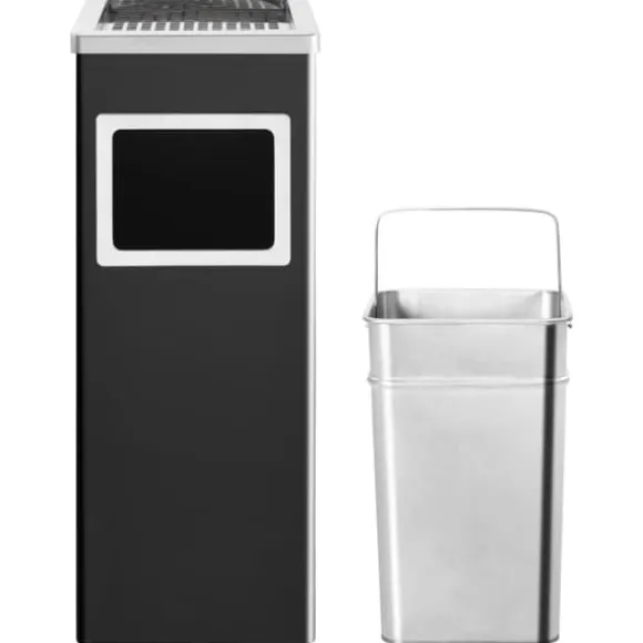 Eftersom att den är tillverkad i pulverlackerat stål är den stadig och rost- och slagtålig, vilket säkerställer långsiktig användning. Du kan enkelt tömma askfatet med de avtagbara inläggen. Innertunnan kan också tas ut för enkel tömning och rengöring.
