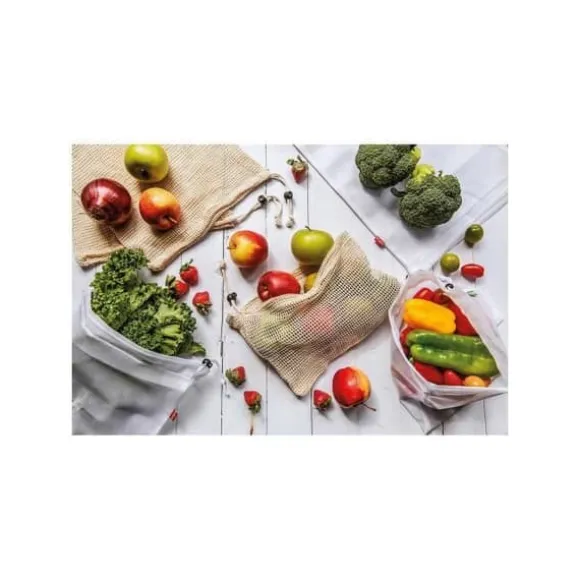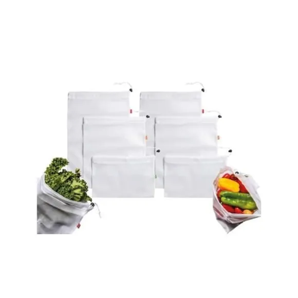 Denna uppsättning med 6 återanvändbara PET-påsar är perfekta för att transportera och lagra dina bulkköp av grönsaker, spannmål, frön, oljeväxter. Påsarna har en självlåsande stängning och är handtvättbara. De representerar ett ekologiskt alternativ till plastpåsar.