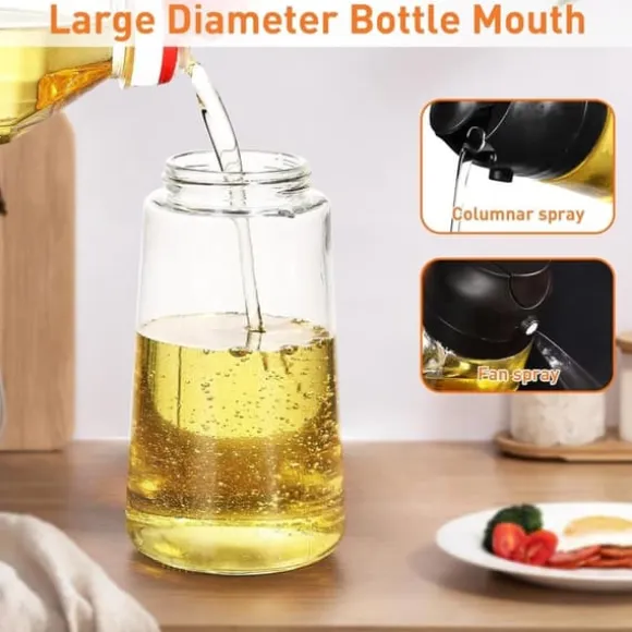 Dubbel funktion, mångsidig: Denna matlagningssprayflaska kan både spraya och hälla olja, och passar för olika matlagningssituationer som salladsdressing, grillning, stekning och bakning.