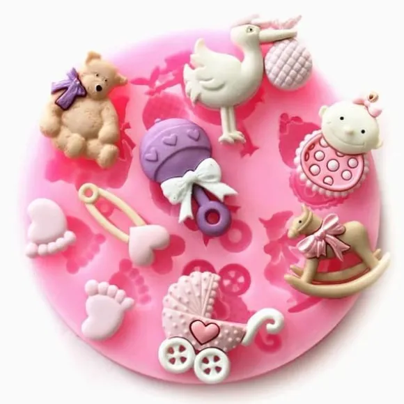Denna silikonform använder man till att göra fina dekorationer till Baby Shower eller dop. Formen är flexibel och väldigt lätt att arbeta med.