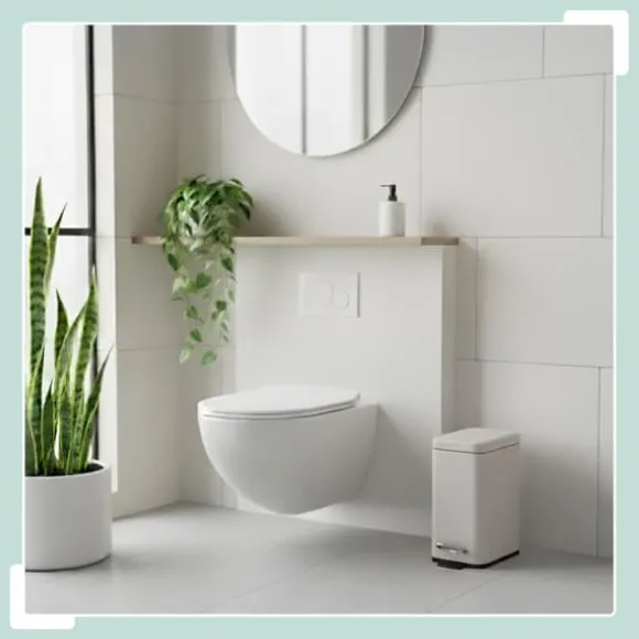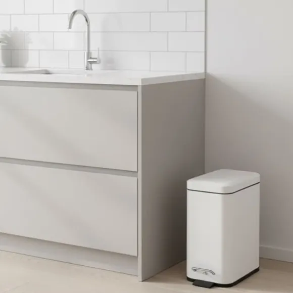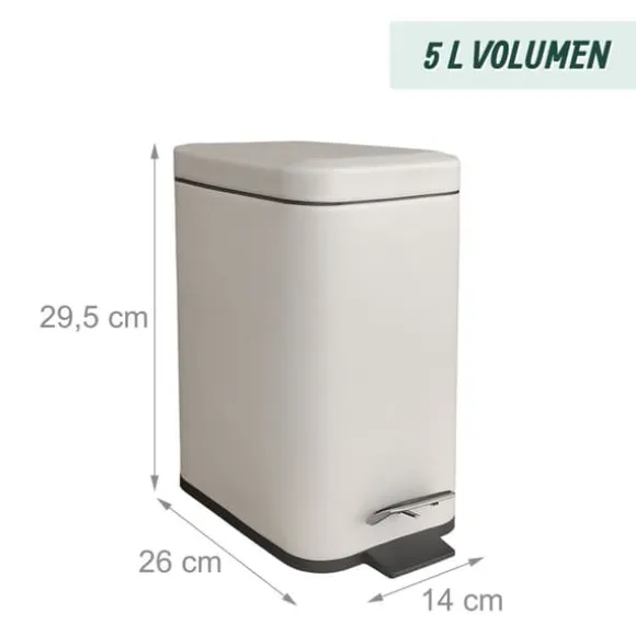 Denna badrumsbehållare erbjuder hygienisk avfallshantering med ett mjukstängande lock som säkerställer tyst och mjuk stängning. Den har en fotpedal för handsfree-användning och en avtagbar innerhink för enkel tömning, vilket gör den till ett praktiskt tillskott i vilket badrum eller sminkbord som helst.