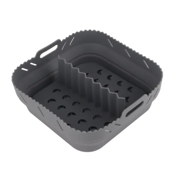 Den rektangulära luftfritösen i silikon kommer med två handtag för att skydda händerna från brännskador och gör det enkelt att överföra mat till tallrikar eller skålar. De upphöjda linjerna på luftfriteringsdynan hjälper till att förbättra värmecirkulationen, vilket säkerställer att din mat blir jämnt tillagad och utsökt.