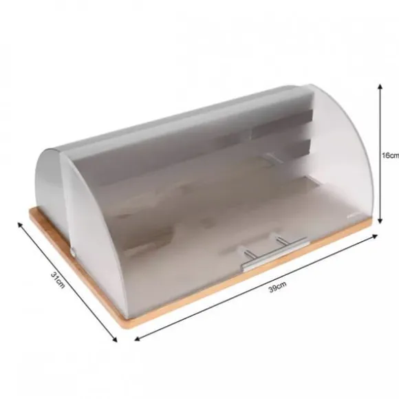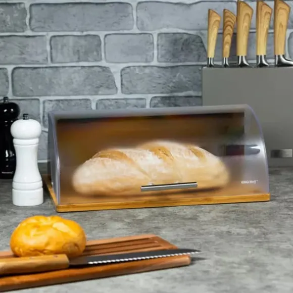 Ekologisk behållare för förvaring av bröd. Kropp gjord av bambuträ. Överdrag i matt akryl. Funktioner: – Materialen som används är ekologiska och hygieniska – Lätt att använda, ingen extra yta krävs för att öppna locket – Locket öppnas och stängs försiktigt – Lätt och solid konstruktion – Designad för förvaring av alla typer av bröd och munkar – Storlek: 39×28. 5×15 cm