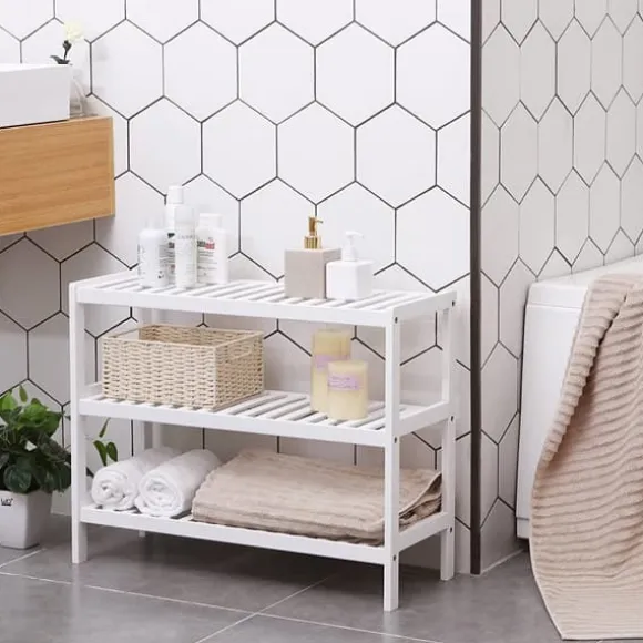 Flera bruk bambu förvaring i vit färg som kan används i hallen som skoförvaring, i badrummet för att sätta dina duschredskap eller kan du använda den i arbetsrummet för förvaring av dina böcker. Du har säkert fler idéer!