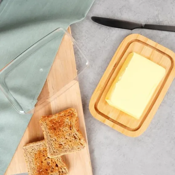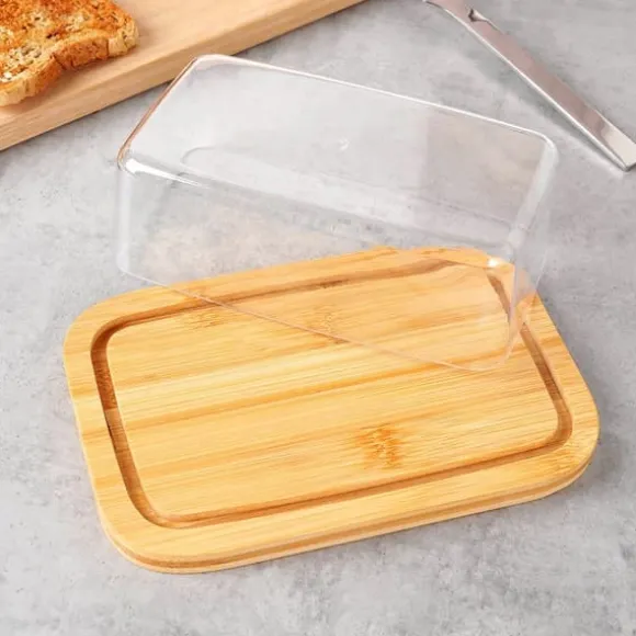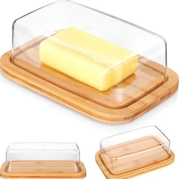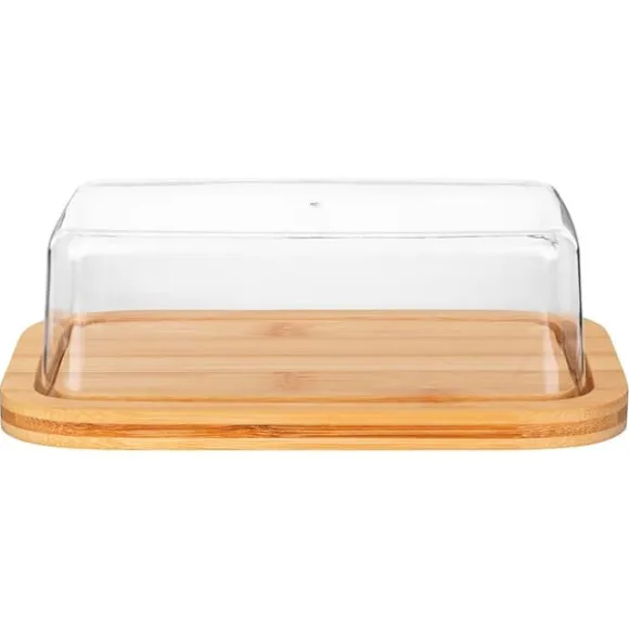 Bambuställ – Stället till smörfatet är tillverkat av naturligt bambuträ. Locket är tillverkat av slitstark, genomskinlig plast.
