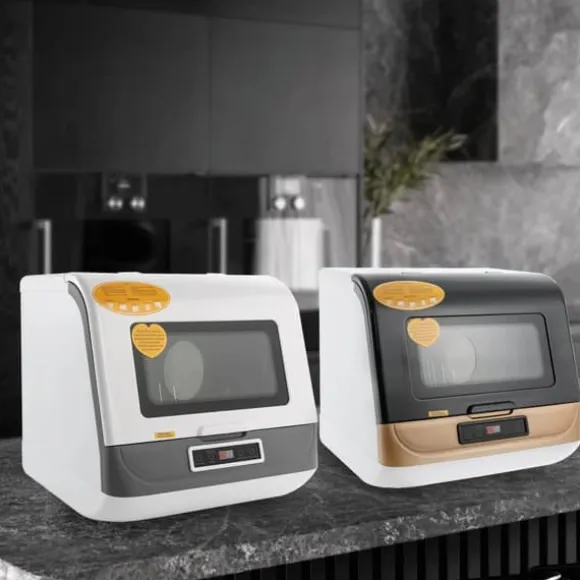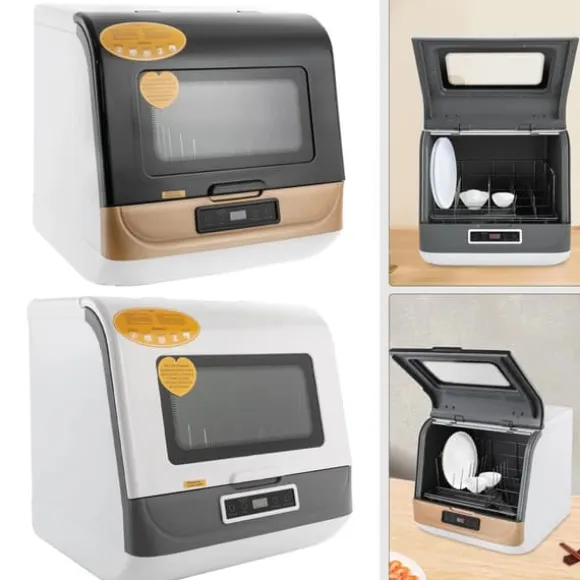 Bänkdiskmaskin DWS-T05, portabel mini, vit, 220V 800W, med vattenslang
