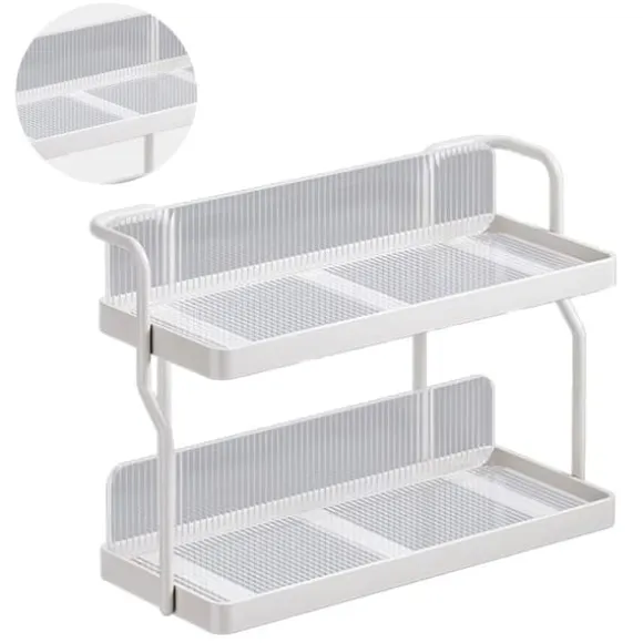 2、 Dubbellagerdesign: Maximerar utrymmet på bänkskivan, denna 2-vånings förvaringshylla ger gott om förvaring och hjälper till att hålla ditt kök organiserat och snyggt.