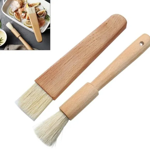 Dessa borstar är gjorda av naturliga borst och eukalyptus och är tillverkade med fint utförande för att säkerställa att inga borst faller på din mat. Trähandtaget ger ett bekvämt grepp för enkel hantering.