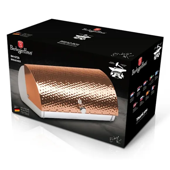Elegant brödask från Berlinger Haus i serien Rose Gold. Denna stiliga brödask är en perfekt kombination av funktionalitet och design, vilket gör den till ett måste i varje kök. Med sin moderna och tidlösa design i roséguld kommer den att förhöja stilen i ditt hem, samtidigt som den håller ditt bröd färskt och välsmakande.