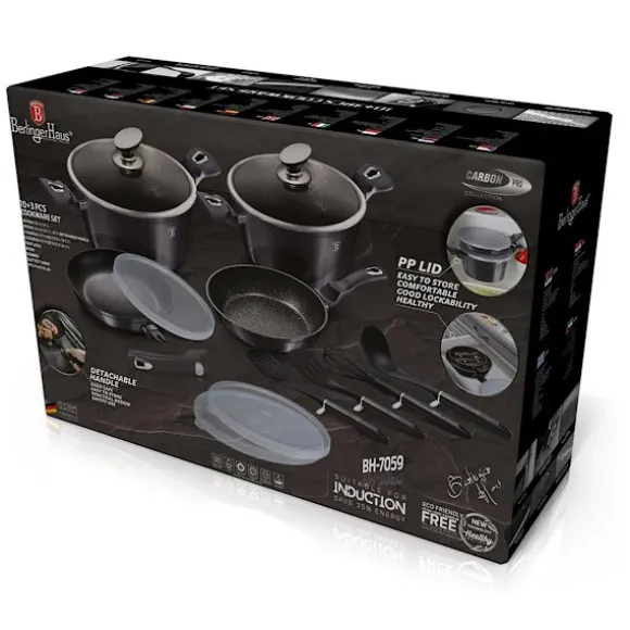 Utrustad med Soft Touch-handtag i silikon, erbjuder detta set en bekväm och säker användning, oavsett om du lagar mat på gas, el, keramik, halogen eller induktion. Den innovativa TURBO INDUCTION-teknologin gör att redskapen snabbt når rätt temperatur och sparar upp till 35% energi, vilket gör matlagningen både snabbare och mer effektiv.