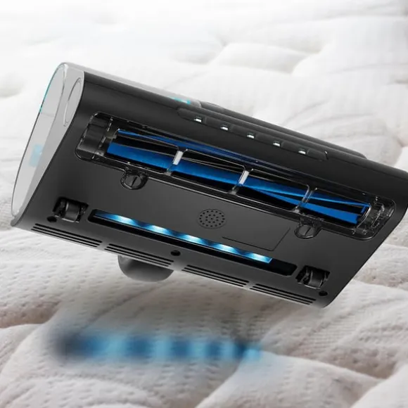 En handhållen madrassrengörare med 4m sladd. Den har en motordriven borste med kombinerade borst (gummi och borste) för att lyfta och suga upp smuts och tvättbara filter. Perfekt för personer med allergier och hem med husdjur.