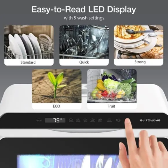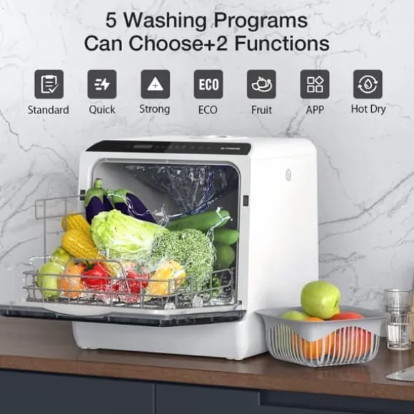 ●Fem tvättprogram: Designad med 5 tvättprogram inklusive Standard, Quick, Strong, ECO, Fruit, för att möta dina dagliga behov; Standardläget är lämpligt för den vanligaste servisen; Snabbläge tar bara 29 minuter för en grundläggande tvätt; ECO-läge kan spara el och vatten; Fruktläge är för dig som vill rengöra specifika föremål.