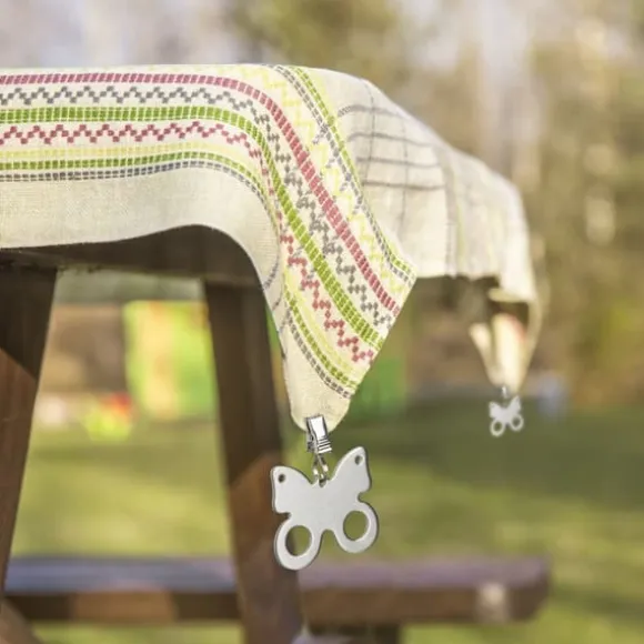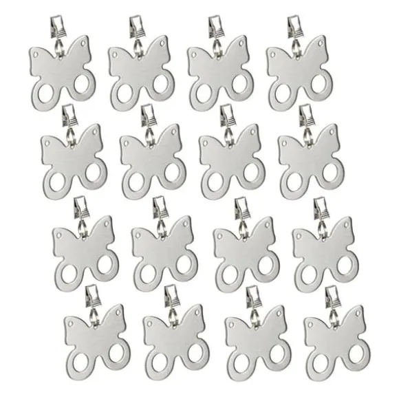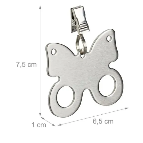 Håll din bordsduk säkert på plats under utomhustillställningar med detta set av dekorativa fjärilsformade bordsduksvikter, rostfritt stål, silver, för både inomhus- och utomhusbruk, kan även användas som gardin- eller duschdraperivikt, mått (H x B x D): 7,5 x 6,5 x 1 cm styck, fjäril (H x B): 5,5 x 6,5 cm, klämma (H x B x D): 1,5 x 1 x 1 cm, vikt: 40 g styck, antal: 16 bordsduksvikter