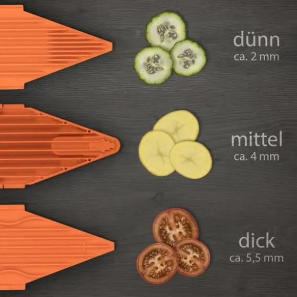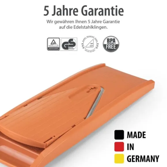 - Kvalitet – Tillverkad i Tyskland: Våra högkvalitativa grönsaksskärare, lökskärare, julienneskärare, mandolinskärare och andra grönsaksknivar har tillverkats i vår fabrik i Eifel i över 60 år och är av högsta kvalitet .