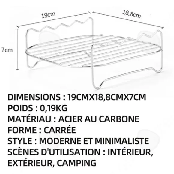 1. Högkvalitativt kolstål: Grillen är gjord av högkvalitativt kolstål, säker och hälsosam, i direkt kontakt med mat, lätt att rengöra med vatten. 2. Rundade kanter: Produktens kanter är rundade, vilket ger en smidig handkänsla, utan risk för att du skadar fingrarna under användning, vilket förbättrar användarupplevelsen. 3. Rostbeständighet: Grillen är designad med tjocka och tätt placerade linjer, inte bara stark och hållbar utan även rostbeständig. 4. Bekväm och flexibel: Denna grill är lätt att hantera, kan lätt vändas, vilket effektivt kan förhindra att mat faller. Mått: 19cmx18,8cmx7cm Vikt: 0,19kg Material: Kolstål Form: Fyrkantig Stil: Modernt och minimalistiskt Användningsscener: Inomhus, utomhus, camping