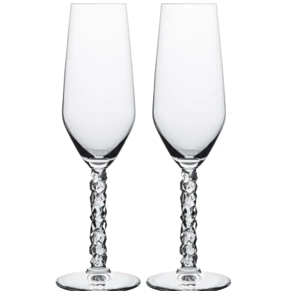 Carat champagneglas i 2-pack från Lena Bergström, Orrefors. Glasen har en klassisk form med Carats karakteristiska fot precis som hela serien. Glasen är eleganta, romantiska och passar perfekt till mingel, middag och tillsammans med andra produkter ur serien Carat. Detta är designutveckling i sant Orreforsmanér.