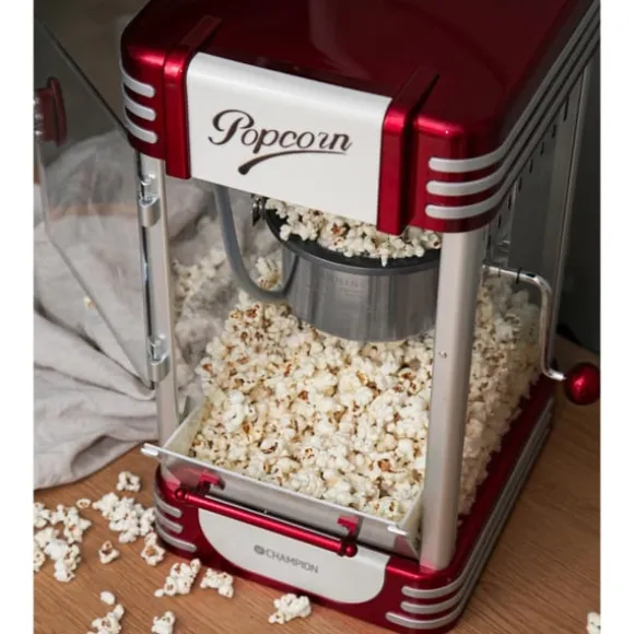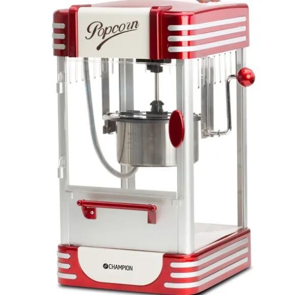 Champion Popcornmaskin Retro är för dig som vill göra goda popcorn med biografkänsla hemma. Höj stämningen vid hemmabiokvällen, festen eller barnkalaset. Maskinen klarar även det stora sällskapet tack vare den väl tilltagna kastrullen. Maskinens fönster och belysning gör det enkelt följa poppningen och på ett par minuter har du krispigt goda popcorn klara.