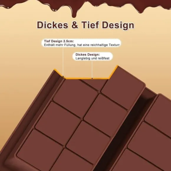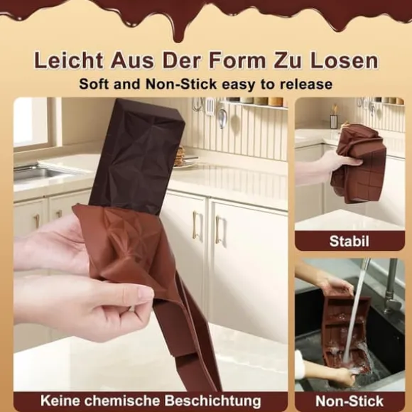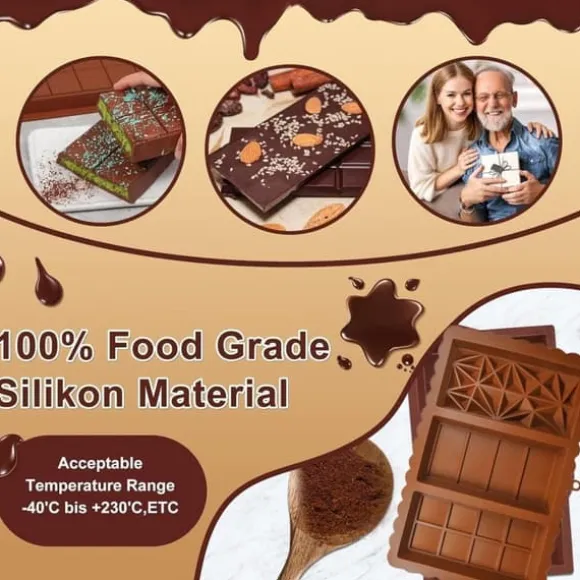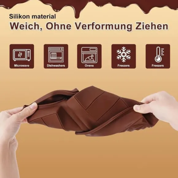 Den mjuka silikonformen har en non-stick-beläggning och en slät yta, vilket gör det enkelt att trycka ut chokladen från botten. Rengöring är smidig – handtvätta eller kör i diskmaskinen för snabb och enkel underhåll.