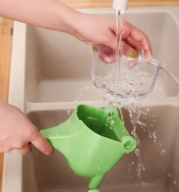 Enheten tål maskindisk, men i själva verket behöver du, till skillnad från sina rostiga metallmotsvarigheter, bara skölja av den efter användning.