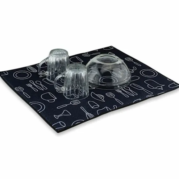 Den är praktisk när din traditionella diskställ ibland fylls eller om du behöver torka lite extra disk. Cocina-mattan är tillverkad av absorberande mikrofiber, så den skyddar din träbänkskiva från droppande fukt.