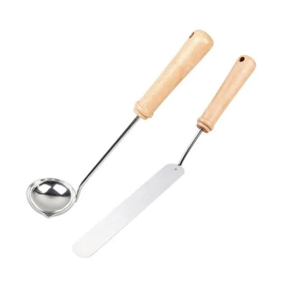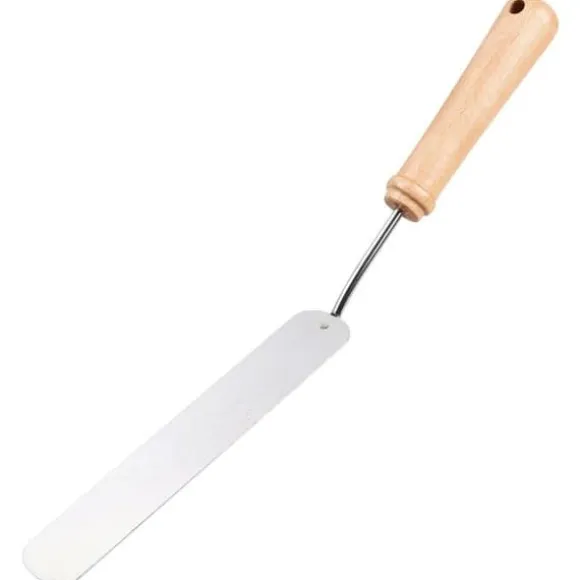 Spatel för pannkakor i rostfritt stål med handtag av bokträ. Längd 35 cm och användbar yta 17 x 3,5 cm. Handtvätt rekommenderas. Tillverkad i Frankrike, detta högkvalitativa köksredskap är perfekt för att laga dina pannkakor.