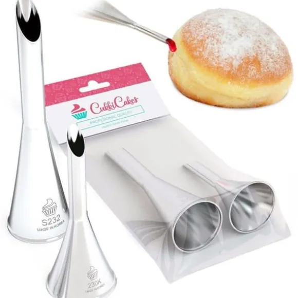 viktigt för att fylla desserter: set bestående av 2 munstycken (modeller 230k och s232) för att fylla alla sorters desserter: cupcakes, muffins, profiteroles, brioches… lämpliga för professionellt bruk: de har en förstärkt botten och är gjorda i ett stycke (utan svetsning), för att undvika deformation eller brott, även under de mest extrema användningsförhållandena. tillverkad i Sydkorea med en kvalitet som är mycket högre än någon standard konditorivaror.