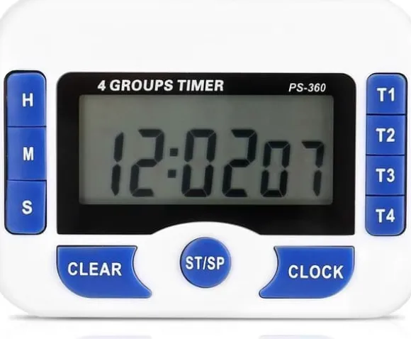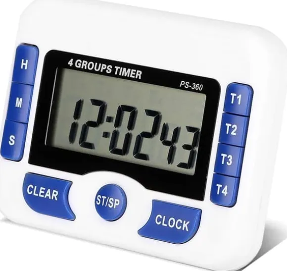 Denna 4-kanals multifunktionstimer stöder samtidig eller oberoende inställning av fyra timers, med ett maximalt nedräkningsområde på 99 timmar, 59 minuter och 59 sekunder, och en minsta inställning på 1 sekund, vilket uppfyller de olika behoven för både långvariga uppgifter och kort, exakt timing. Enheten kan också användas som en digital klocka, med genvägsknappar för att enkelt byta visningsläge. Dedikerade knappar för T1-T4 möjliggör snabb timinghantering.