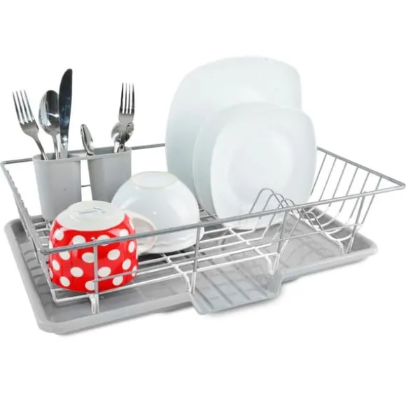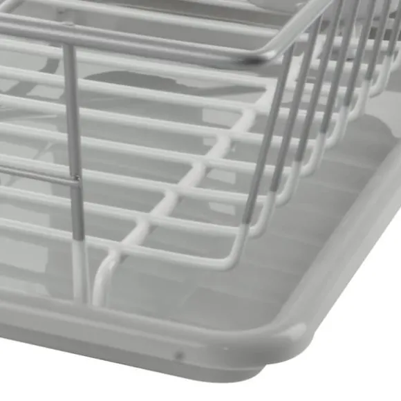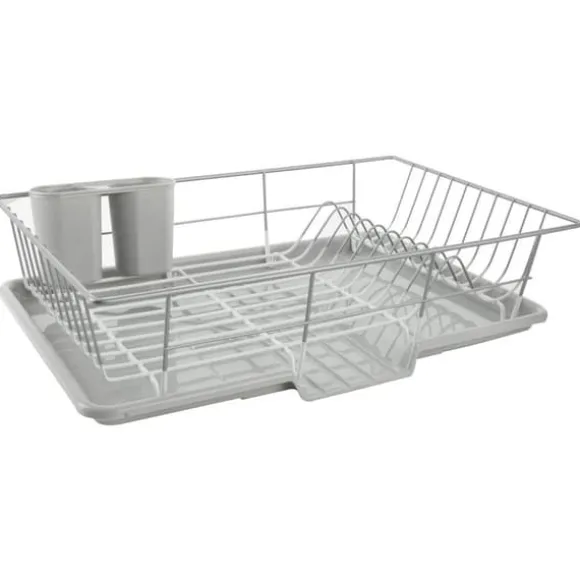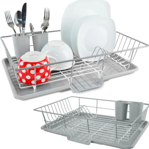 ✅ SOLID – Torkställning tillverkad av förkromad tråd av rostfritt stål, säkrad med en extra skyddande beläggning i grått och vitt. Utrustad med en avtagbar bricka och bestickställ tillverkad av högkvalitativ grå plast.