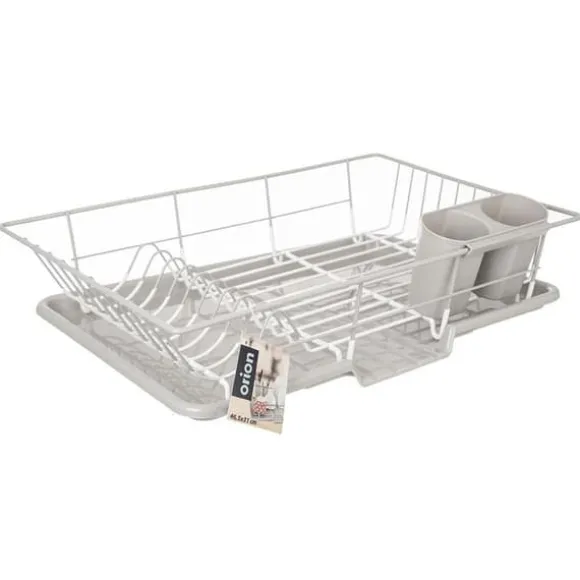 En kompakt diskställ med plats för tallrikar och bestick. Tillverkad av slitstarka material, kommer den att sätta stopp för kladdig disk och våta märken på bänkskivan vid diskhon. Denna diskställ är en viktig del av köksutrustningen. Tillverkad i klassisk stil, men ändå funktionell. Lätt att rengöra. Den har en avtagbar droppbricka, vilket gör det enkelt att hålla den ren. En originalprodukt från det tjeckiska märket Orion. Tillverkad enligt europeiska standarder.