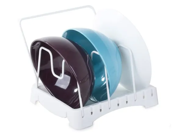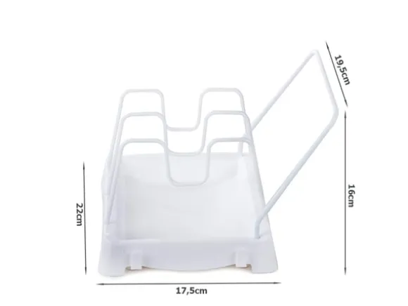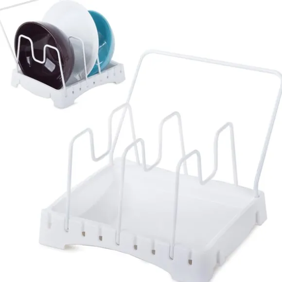 Diskstället låter digorganisera olika köksredskap som grytlappar, kastrulllock, pannor, grytor, skärbrädor, tallrikar, ugnsformar, etc. Stället är utrustat medett avränningsdike så att köksredskapen kan torka fritt efter tvätt innan de förvaras i skåpet.