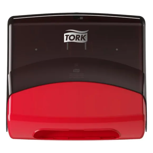 Tork Dispenser för Vikta dukar i top-pack i Performance design skyddar arken mot smuts och matar ut en duk i taget för att minska förbrukning och avfall.