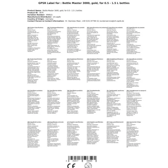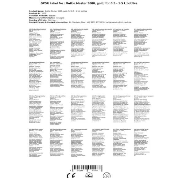dosering Bottle Master 3000 för 0,5 – 1,5 liters flaskor * plast Gold * !! Number 1 vår scoop !! maximal vinst optimering genom att minimera taproom förlusten – speciellt formade locket mot föroreningar ! – lameller korkar säkerställa säker fastsättning på alla flaskor upp till 1,5 liter – exakta doserings i alla europeiska tjänstgör volymer av 2,0 – 5,0cl – snabb bild sekvens när upprepad fördelning varje sekund – Bil stoppfunktion sparar re virvlande flaskan – ingen fastklibbning av andar, som den flaska master 3000 utan rörliga delar som arbetar – funktion garanterat -10 ° C – säkra livsmedel – smaklös – droppkant förhindrar bildandet av droppar – modern design i svart, krom eller guld på begäran i speciella färger levereras Auschankmenge: Hotell i cl: 2,0; 2,1; 3,0; 3,5; 4,0; 5.0 och sälja i ml: 20; 21; 30; 35; 40; 50 finns i färgerna:svart plast, plast krom, plast guld