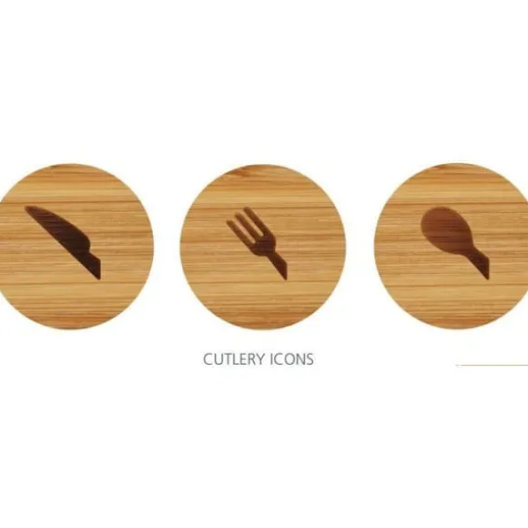Utseende: Färger = Bambu • Huvudmaterial = Bambu • Sekundära material = Silikon • Mått: Höjd (i cm) = 6 • Längd (i cm) = 12,20 • Djup (i cm) = 39,80 • Övriga egenskaper: Information kompletterande = Stapelbar individ fack för olika typer av bestick , Ikoner för att enkelt identifiera typen av bestick , Halkfria fötter , Lämplig för lådor