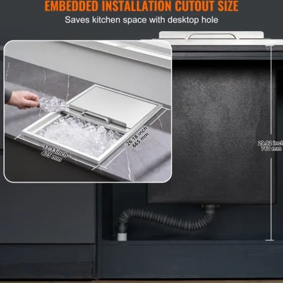 Perfekt för installation i dryckesbutiker, hotell, bardiskar och köksbänkar. Sparar utrymme och ger en praktisk lösning för isförvaring.