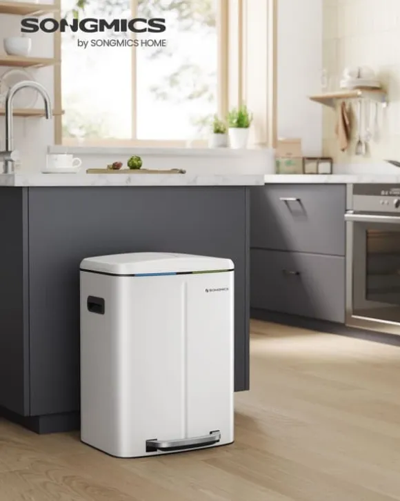 Varför ska du välja den här soptunnan? den vita färgen ger en elegant touch till ditt kök. den förstärkta stålbehållaren är robust och hållbar. standardfunktioner:Återvinning kan också vara enkeltDen här pedaltunnan med 2 separata fack gör det enkelt att sortera ditt avfall, t.ex. restavfall och organiskt avfall. Allt du behöver göra är att trycka på pedalen och kasta avfallet i det inre facket. Du behöver inte ens röra soptunnan med handen, vilket säkerställer hygienen.En ”valp- och barnsäker” soptunnaRysslar din hund ofta i soptunnan? Sträcker sig dina småttingar ofta ner i den öppna papperskorgen? Om så är fallet vill du sätta stopp för det. Det är här vår pedalbehållare kommer in i bilden! Locket öppnas bara när du trycker på pedalen, och det högkvalitativa materialet och den praktiska designen på denna papperskorg erbjuder en smart lösning för avfallshantering. Skaffa den här soptunnan, använd den och dela resultatet med oss i recensionerna!Produktdetaljer:Färg: VitMaterial: Pulverlackerat stål, PP-plast (innerbehållare)Mått: 44,5 x 36 x 60 cm (L x B x H)Mått på innerbehållare: 28,5 x 19 x 50 cm (L x B x H)Total höjd (med öppet lock): 92 cmVikt: 9 kgLeveransens omfattning:1 x soptunnaSONGMICS Anmärkningar:För att rengöra produkten, torka av den med en mjuk, fuktig trasa och använd milda rengöringsmedel vid behov.