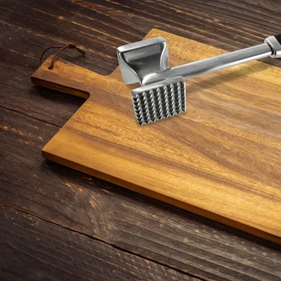 Dubbelsidig köttklubba, tillverkad av slitstarka material. Vid korrekt användning kommer den att hålla i åratal. Den har två bankande ytor. Den släta sidan gör att du kan platta till köttet, medan den upphöjda sidan är perfekt för att möra det. Med denna klubba kan du enkelt tillaga perfekta fläskkotletter, fågelfiléer, nötkotletter eller rullader. Stöten är bekväm att använda och har ett praktiskt handtag som ligger säkert i handen. Extremt stark och hållbar. Helt säker för hälsa och livsmedelssäkerhet. För korrekt underhåll rekommenderas inte diskmaskin. Originalprodukt från det tjeckiska märket Orion. Tillverkad i enlighet med europeiska standarder.