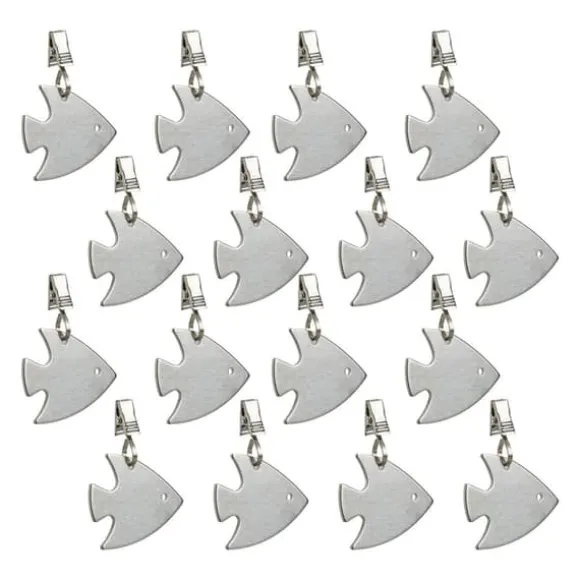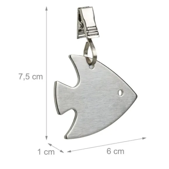 Håll din bordsduk säkert på plats under utomhustillställningar med detta set om 16 dekorativa bordsduksvikter med tidlös fiskdesign. Dessa hållbara vikter i rostfritt stål förhindrar inte bara att duken glider eller blåser bort, utan ger också en stilren touch till din dukning. Perfekta för trädgårdsfester, picknickar, bröllop och mycket mer, de passar både för inomhus- och utomhusbruk.