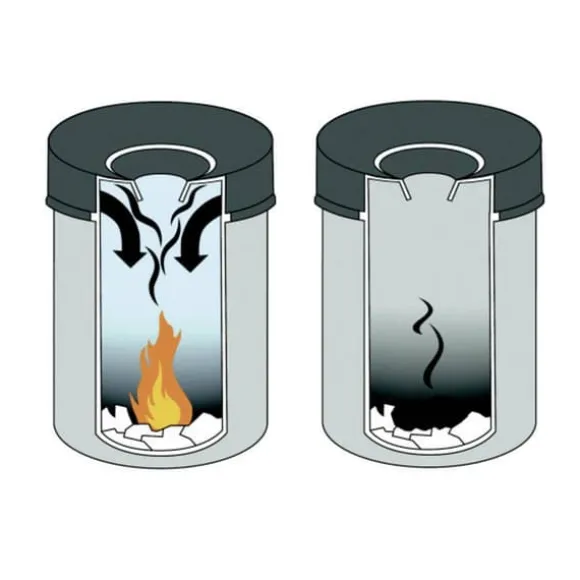 - Rund papperskorg med flamsläckningshuvud för förebyggande brandskydd