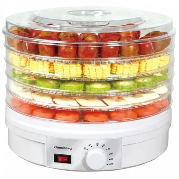 En enhet som är nödvändig i varje modernt kök, enkel och säker att använda. Torkar snabbt och effektivt svamp, örter, frukt och grönsaker. Tack vare noggrant utvecklade torkningsparametrar gör det att du kan bevara produkternas närings- och smakvärden. Flerskiktsarrangemang av siktar ökar torkningseffektiviteten. Funktioner: – 5 avtagbara, stapelbara mattorkarbrickor. – Livsmedelskvalitet PP/AS; BPA fri – Lätttvättade torkbrickor – Justerbar termostat från 35 till 70 grader, gör att du kan torka olika livsmedelsprodukter vid rätt temperatur. – Elektrisk mattorkare i flera nivåer som konserverar olika typer av mat. – Snabbtorkad, konserverad mat på timmar, inte dagar. Ett enkelt sätt att förbereda läckra, hälsosamma och naturliga mellanmål som bananchips, fruktrullar och beef jerky. – Överhettningsskydd – Med inbyggd fläkt – Strömförsörjning: 220-240V 50/60HZ – Effekt: 350W – Storlek: ∅33 x 27cm Vad är torkning? Torkning är helt enkelt uttorkning. Tack vare att cirka 70 % av vattnet i frukt och grönsaker förångas, behåller produkterna sin hållbarhet. Som ett resultat av vattenavdunstning koncentreras ingredienserna som finns i frukt och grönsaker, tack vare vilka bland annat torkade produkter alltid är sötare än färska. Om vi torkar vår sommarskörd ordentligt kommer de att helt behålla alla bioelement, tanniner, syror och karoten och, vilket är mycket viktigt för våra tarmars funktion, fiber och pektin. Deras smak och lukt kommer också att förbli oförändrade.