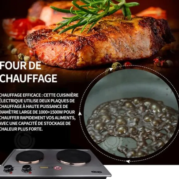 Den elektriska INN dubbelbrännare med 1000+1500 W erbjuder en effektiv och snabb tillagningsyta. Med sina mått på 315×500 mm och sin brandsäkra design är den idealisk för alla typer av kastruller. Njut av en jämn matlagning och exakt värmekontroll för att förbereda dina favoriträtter.