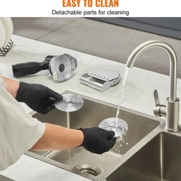 Avtagbara delar: De delar som kommer i kontakt med livsmedel är tillverkade av livsmedelsklassat rostfritt stål 5Cr15MoV, som är känt för sin slitstyrka och korrosionsbeständighet. Alla knivar och tillbehör är avtagbara för enkel rengöring.