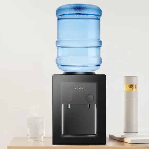 Elektrisk vattendispenser – Svart En kompakt och driftsäker dispenser för hem och kontor, perfekt för skrivbord, nattduksbord, soffbord och barer. Ger snabbt varmt eller svalt vatten när du behöver det – i stilren svart finish.